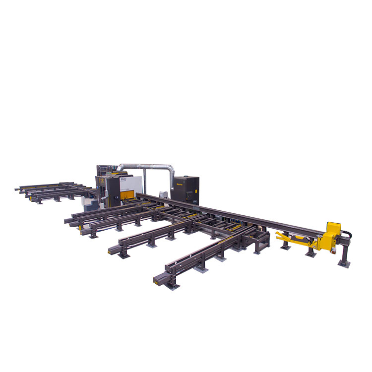 Genom att integrera en tvärtransportör (kedjetyp) till PKG:s inmatningsrullbordBeam Robot Skärmaskins kan H-balkarna och andra profiler flyttas till den plats som behövs, utan att använda kranen för att minska risken för kran till 0.