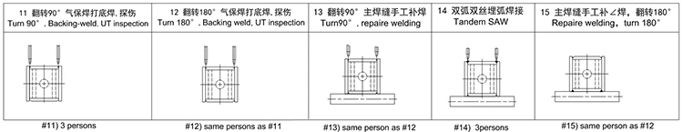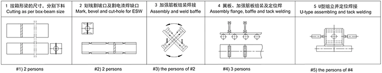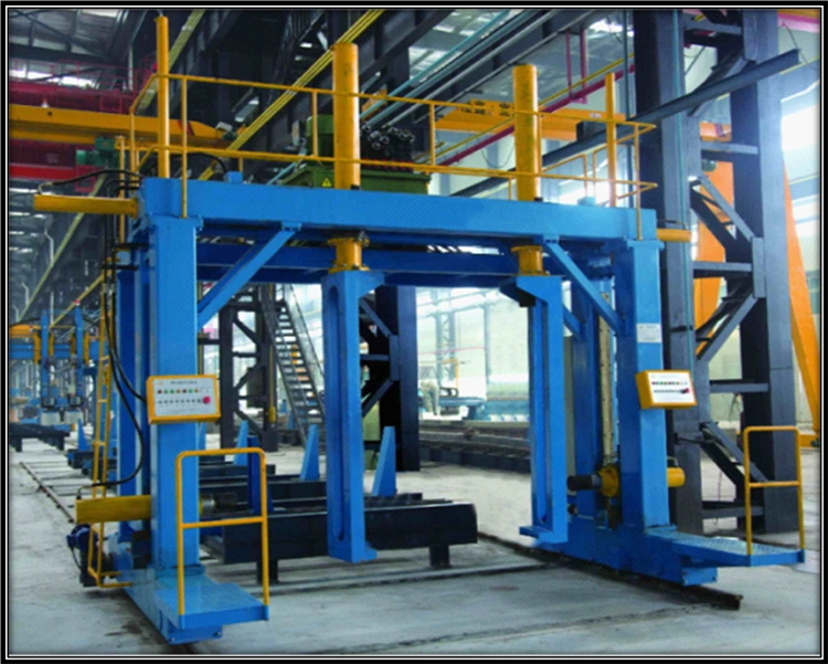 Lyft först den "U-formade" platsen svetsad till den transporterande rullbordet på monteringsmaskinen eller transporterar den till denna station från den tidigare "U-formade" monteringsstationen. Lyft sedan upp den övre täckplattan på den "U-formade" enligt ritningskraven och använd den som en värdsida för att pressa enheter och en övre pressningsanordning. Tryck och spot svetsa den övre täckplattan för att slutföra montering av hela arbetsstycket. Montering av segment av ett arbetsstycke i längd uppnås genom värdmaskinens rörliga position. Det monterade arbetsstycket skickas till nästa process med transportrulltabellen för ytterligare bearbetning.